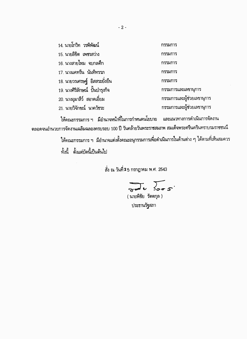 • คำสั่งรัฐสภา ที่ 13 / 2543 เรื่อง แต่งตั้งคณะกรรมการอำนวยการ