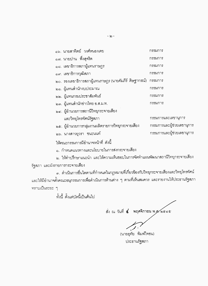 • แต่งตั้งคณะกรรมการบริหารสถานีวิทยุกระจายเสียงรัฐสภา