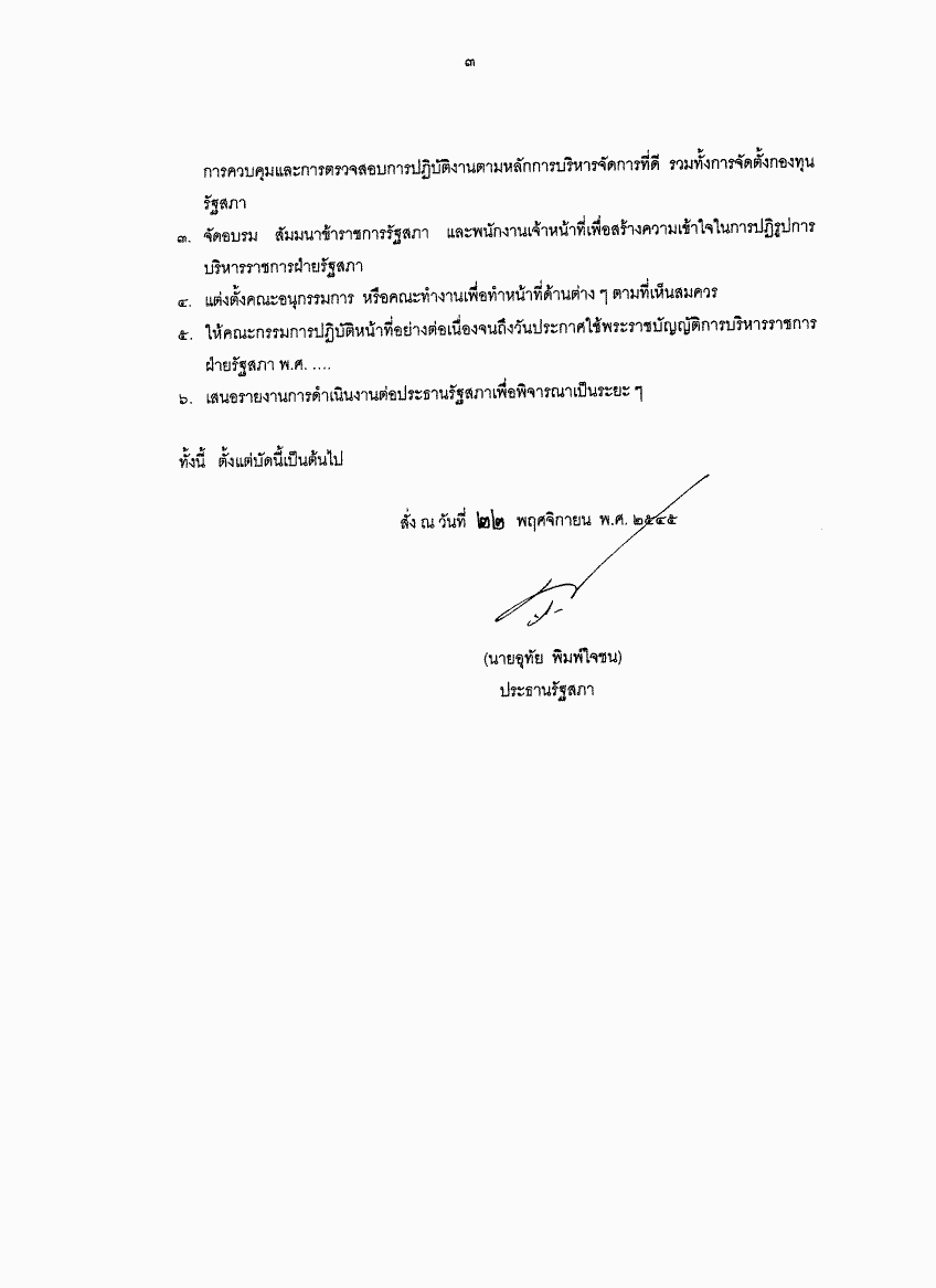 คำสั่งรัฐสภา ที่ 25 /2545 เรื่อง แต่งตั้งคณะกรรมการปฏิรูปการบริหารราชการฝ่ายรัฐสภา |