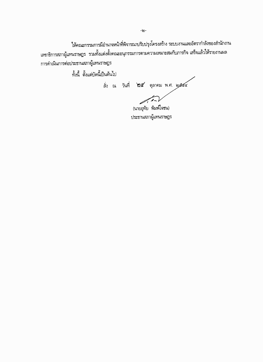 • แต่งตั้งคณะกรรมการปรับปรุงโครงสร้าง ระบบงานและอัตรากำลังของสำนักงานเลขาธิการสภาผู้แทนราษฎร