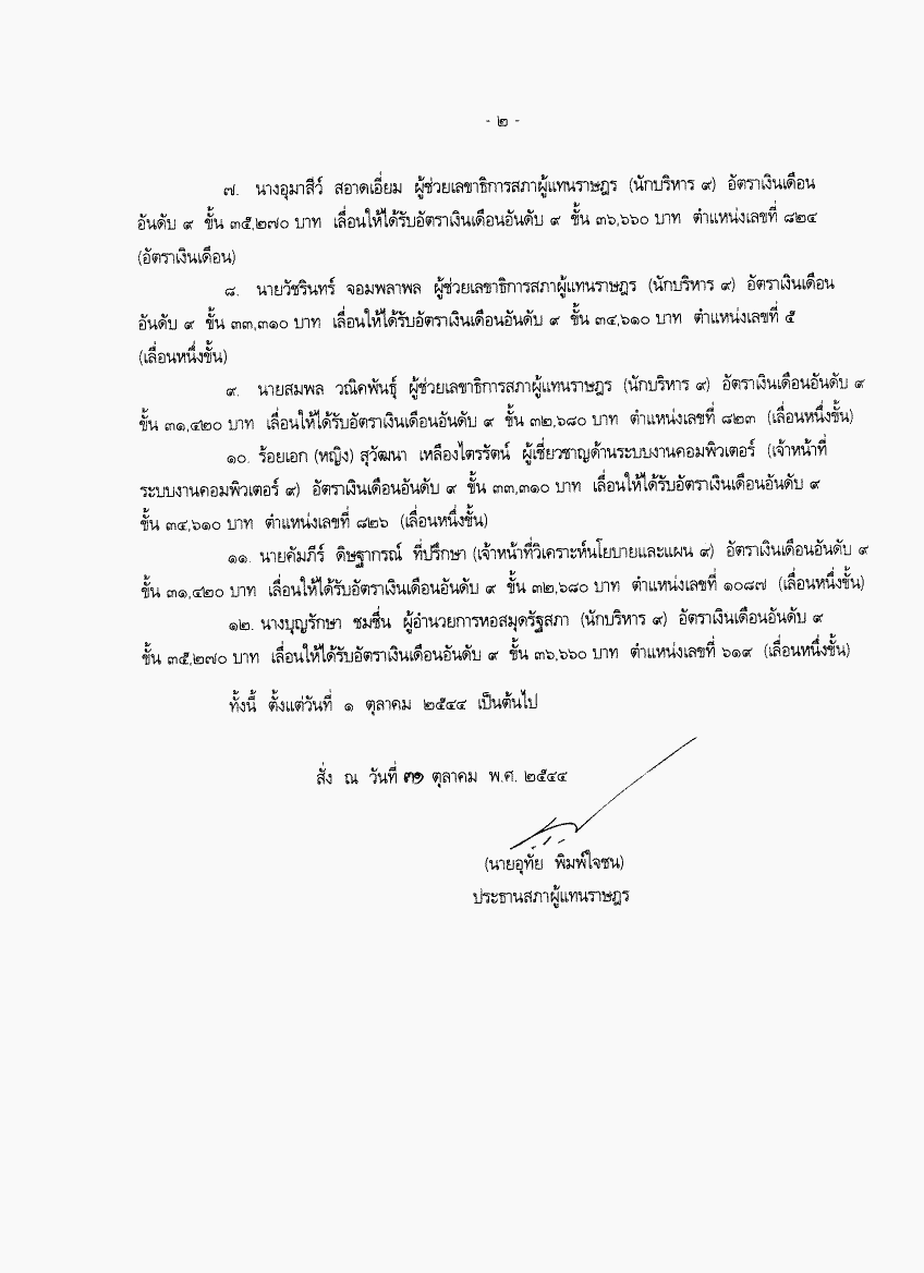 • คำสั่งสภาผู้แทนราษฎร ที่ 37/2544 เรื่อง การเลื่อนขั้นเงินเดือนข้าราชการรัฐสภาสามัญ