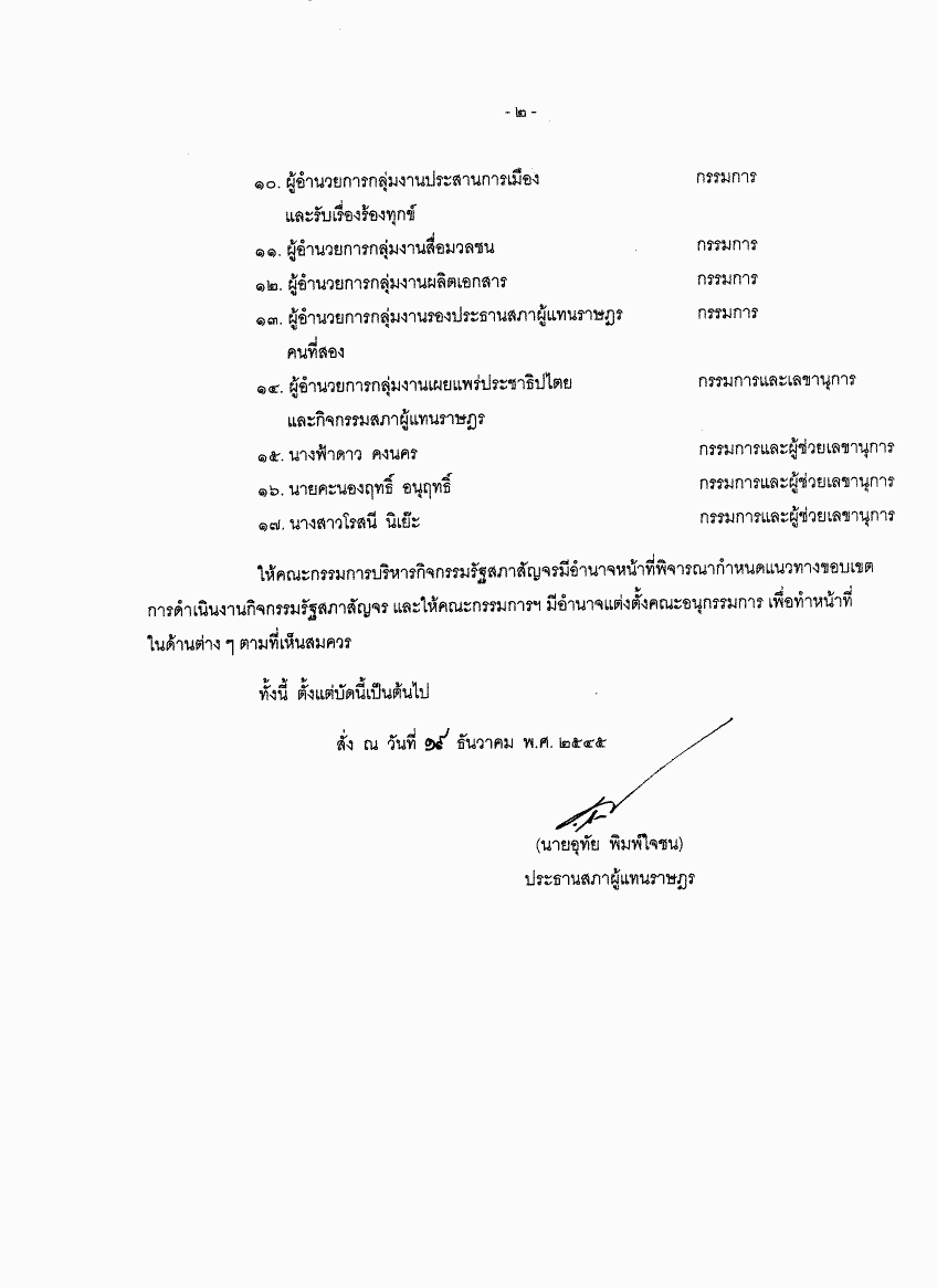 ชื่อเอกสาร : คำสั่งสภาผู้แทนราษฎร ที่ 27/2545 เรื่อง แต่งตั้งคณะกรรมการบริหารกิจกรรมรัฐสภาสัญจร