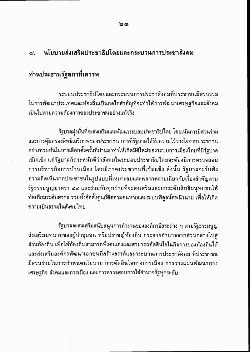 คณะรัฐมนตรีแถลงนโยบายต่อรัฐสภา ตามมาตรา 211 ของรัฐธรรมนูญแห่งราชอาณาจักรไทย