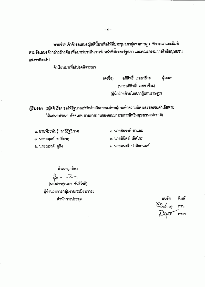 ชื่อเอกสาร :   ขอให้รัฐบาลเร่งรัดดำเนินการลงโทษผู้กระทำความผิด