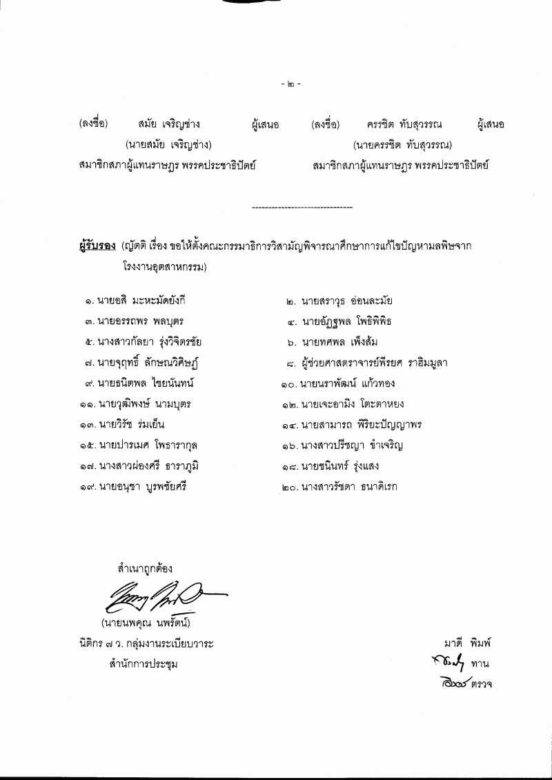 ชื่อเอกสาร :   ญัตติ เรื่อง ขอให้ตั้งคณะกรรมาธิการวิสามัญพิจารณาศึกษาการแก้ไขปัญหามลพิษจากโรงงานอุตสาหกรรม (นาวาตรี สุธรรม ระหงษ์ กับคณะ เป็นผู้เสนอ)