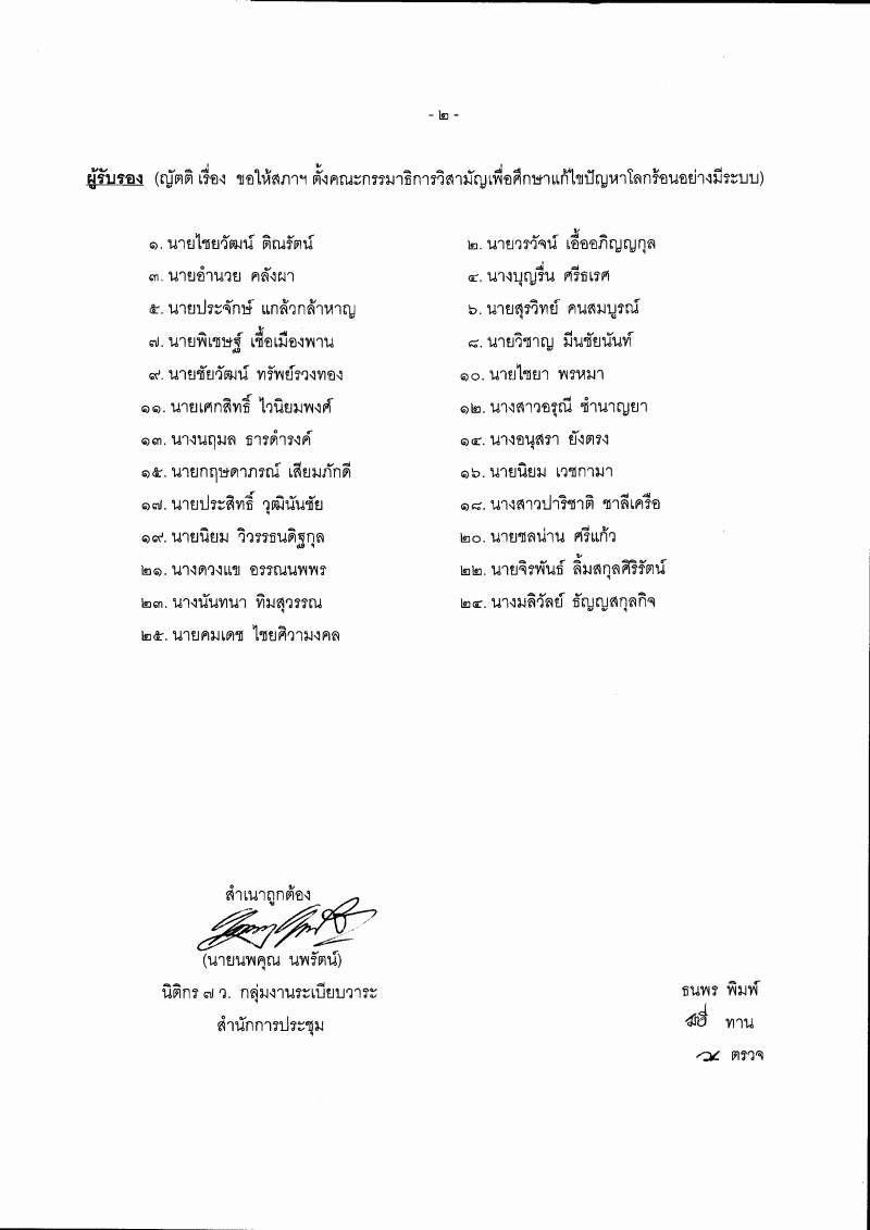 ญัตติด่วน เรื่อง ขอให้สภาฯ ตั้งคณะกรรมาธิการวิสามัญเพื่อศึกษาแก้ไขปัญหาโลกร้อนอย่างมีระบบ (นายประสิทธิ์ ชัยวิรัตนะ และนางสาวสุนทรี ชัยวิรัตนะ เป็นผู้เสนอ) |