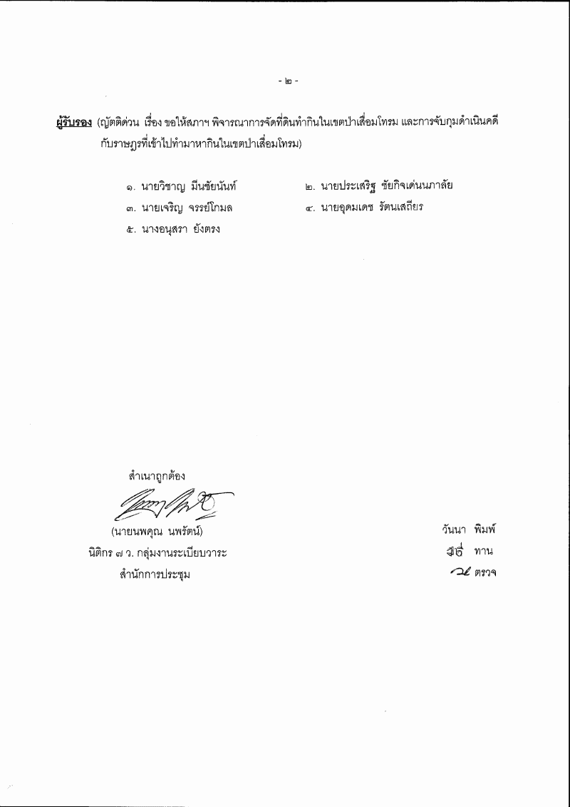 ญัตติ เรื่อง ขอให้สภาฯ พิจารณาการจัดที่ดินทำกินในเขตป่าเสื่อมโทรมและการจับกุมดำเนินคดีกับราษฎรที่เข้าไปทำมาหากินในเขตป่าเสื่อมโทรม (นายอำนวย คลังผา เป็นผู้เสนอ) |