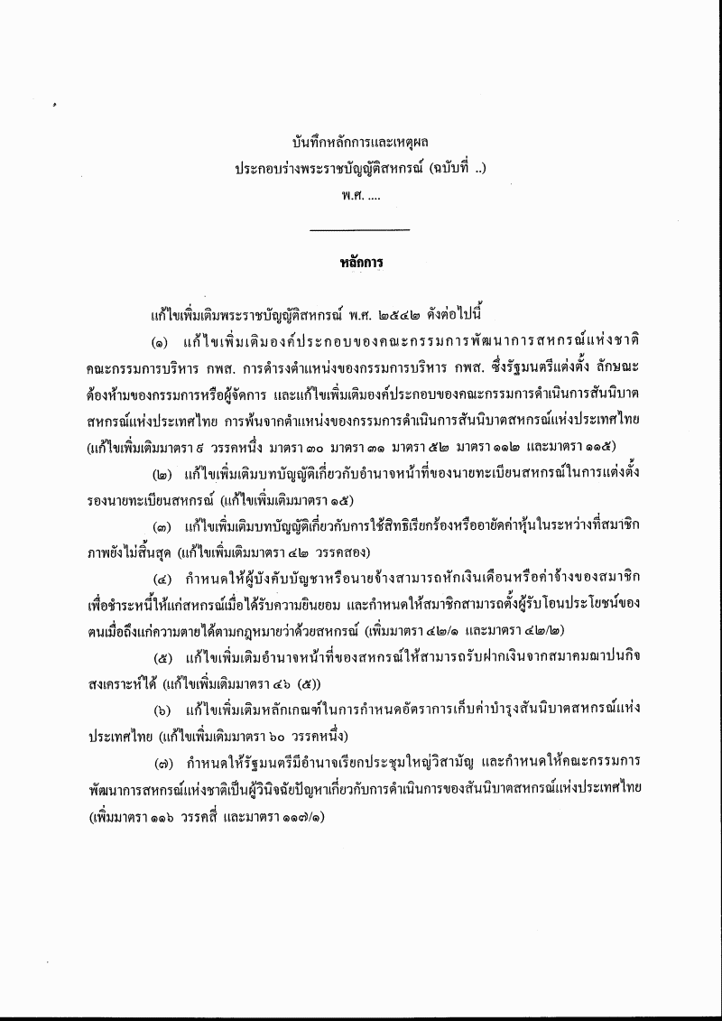 ชื่อเอกสาร :   ร่างพระราชบัญญัติสหกรณ์ (ฉบับที่ ..) พ.ศ. .... (นายวิชาญ มีนชัยนันท์ กับคณะ เป็นผู้เสนอ)