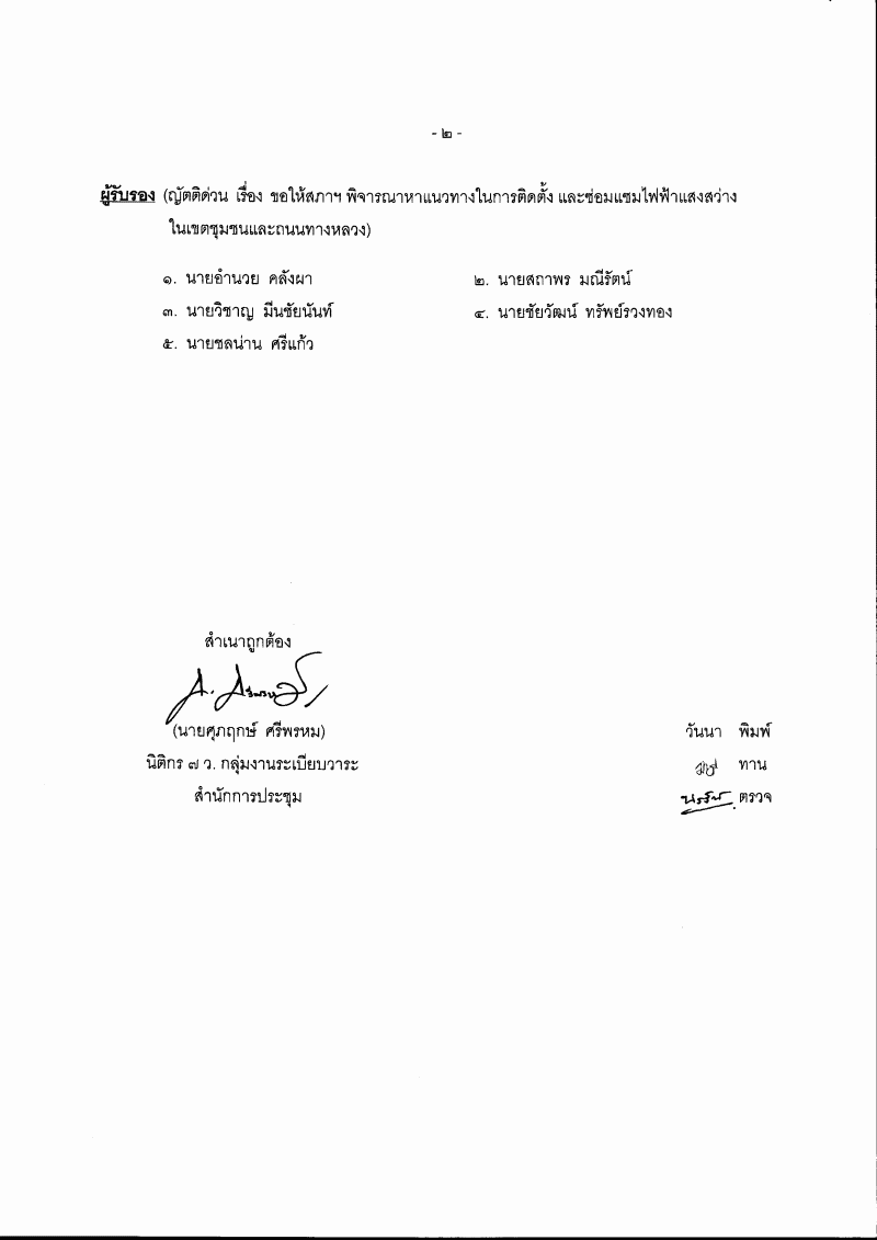 (6.6) ญัตติ เรื่อง ขอให้สภาฯ พิจารณาหาแนวทางในการติดตั้ง และซ่อมแซมไฟฟ้าแสงสว่างในเขตชุมชนและถนนทางหลวง (นายสุชาติ ลายน้ำเงิน เป็นผู้เสนอ) |