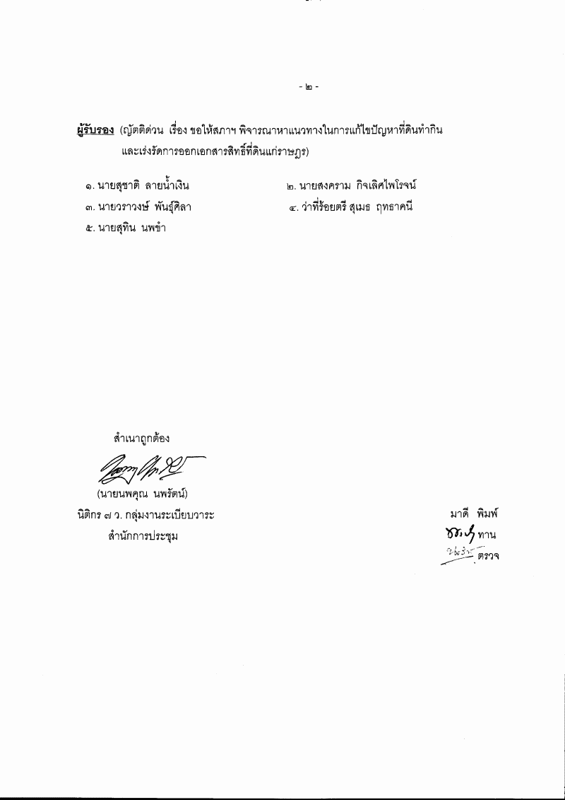 • (6.9) ญัตติ เรื่อง ขอให้สภาฯ พิจารณาหาแนวทางในการแก้ไขปัญหาที่ดินทำกินและเร่งรัดการออกเอกสารสิทธิ์ที่ดินแก่ราษฎร (นายอำนวย คลังผา เป็นผู้เสนอ)