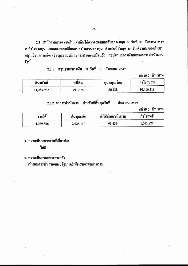 ชื่อเอกสาร :   รายงานผลการดำเนินงานรอบระยะเวลาบัญชีปี ๒๕๔๙ ของเงินทุนหมุนเวียนการผลิตเหรียญกษาปณ์และการทำของ