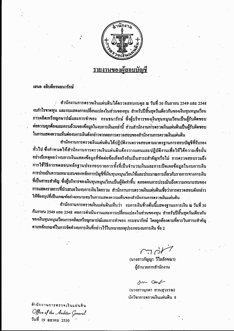ชื่อเอกสาร :   รายงานผลการดำเนินงานรอบระยะเวลาบัญชีปี ๒๕๔๙ ของเงินทุนหมุนเวียนการผลิตเหรียญกษาปณ์และการทำของ