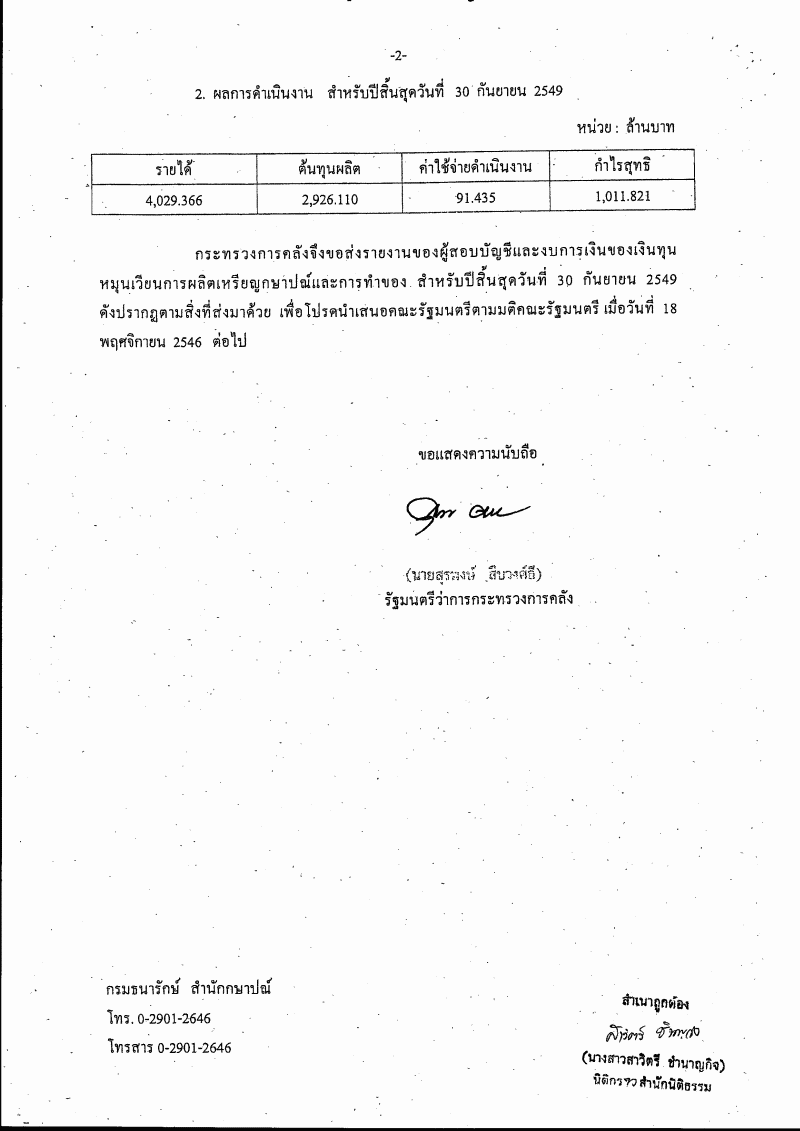 ชื่อเอกสาร :   รายงานผลการดำเนินงานรอบระยะเวลาบัญชีปี ๒๕๔๙ ของเงินทุนหมุนเวียนการผลิตเหรียญกษาปณ์และการทำของ