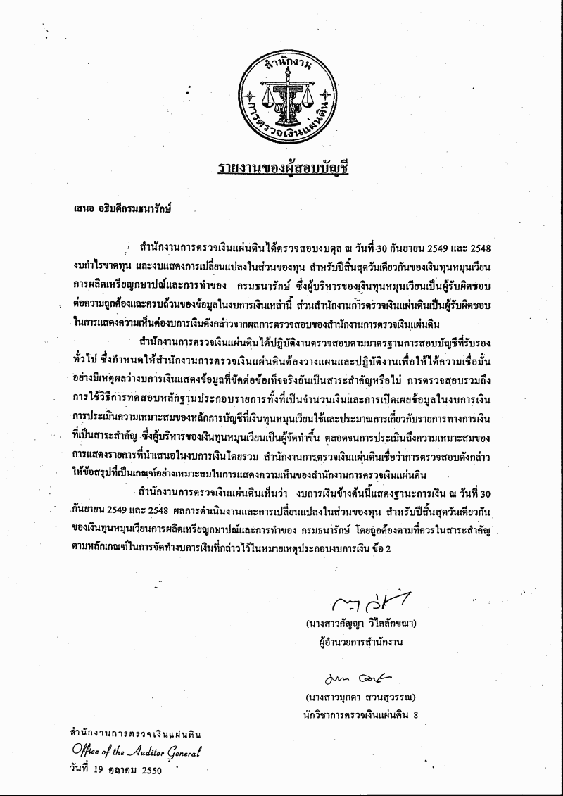 • รายงานผลการดำเนินงานรอบระยะเวลาบัญชีปี ๒๕๔๙ ของเงินทุนหมุนเวียนการผลิตเหรียญกษาปณ์และการทำของ