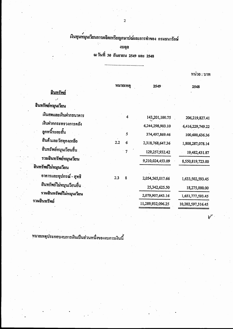 ชื่อเอกสาร :   รายงานผลการดำเนินงานรอบระยะเวลาบัญชีปี ๒๕๔๙ ของเงินทุนหมุนเวียนการผลิตเหรียญกษาปณ์และการทำของ