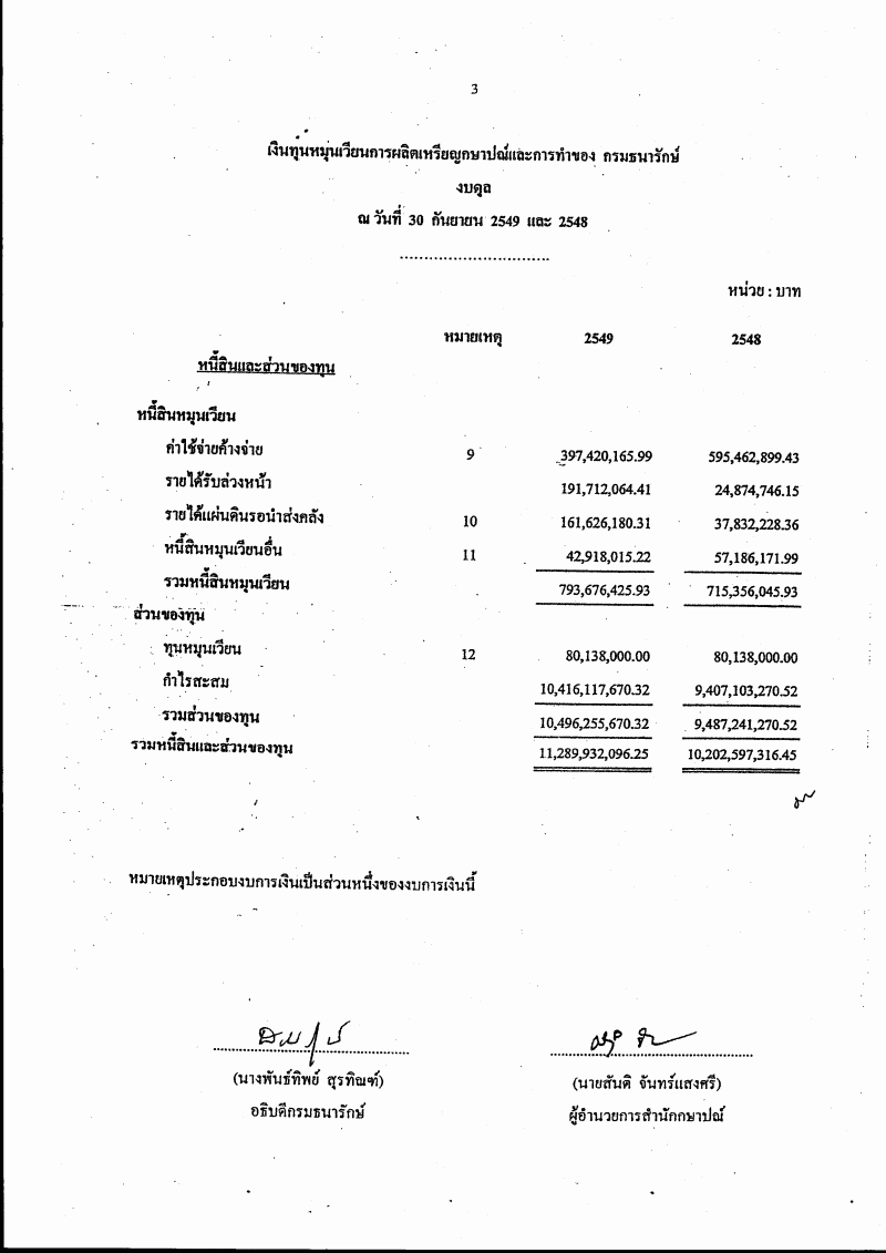 ชื่อเอกสาร :   รายงานผลการดำเนินงานรอบระยะเวลาบัญชีปี ๒๕๔๙ ของเงินทุนหมุนเวียนการผลิตเหรียญกษาปณ์และการทำของ