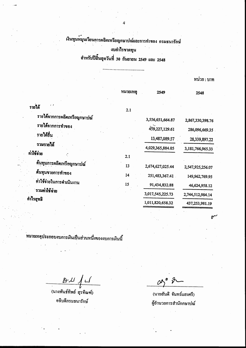• รายงานผลการดำเนินงานรอบระยะเวลาบัญชีปี ๒๕๔๙ ของเงินทุนหมุนเวียนการผลิตเหรียญกษาปณ์และการทำของ