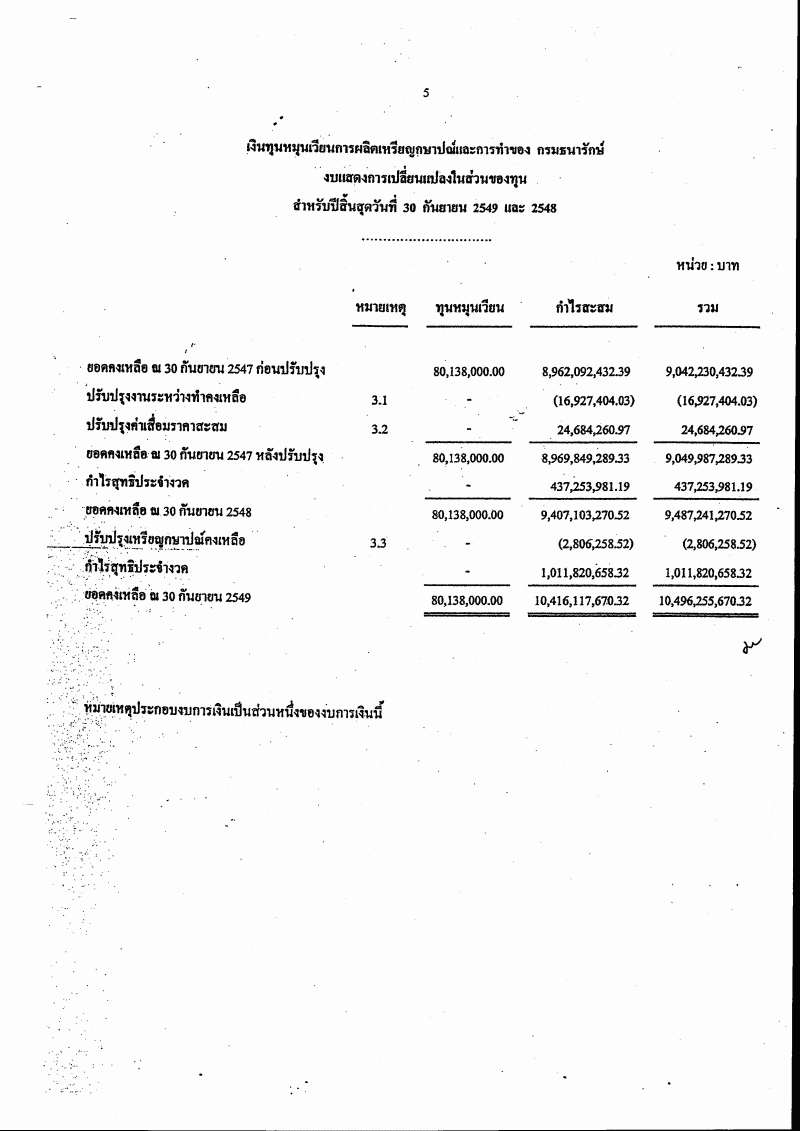 ชื่อเอกสาร :   รายงานผลการดำเนินงานรอบระยะเวลาบัญชีปี ๒๕๔๙ ของเงินทุนหมุนเวียนการผลิตเหรียญกษาปณ์และการทำของ