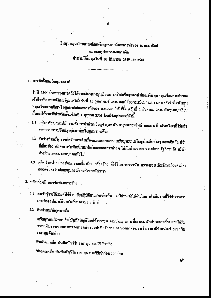 ชื่อเอกสาร :   รายงานผลการดำเนินงานรอบระยะเวลาบัญชีปี ๒๕๔๙ ของเงินทุนหมุนเวียนการผลิตเหรียญกษาปณ์และการทำของ
