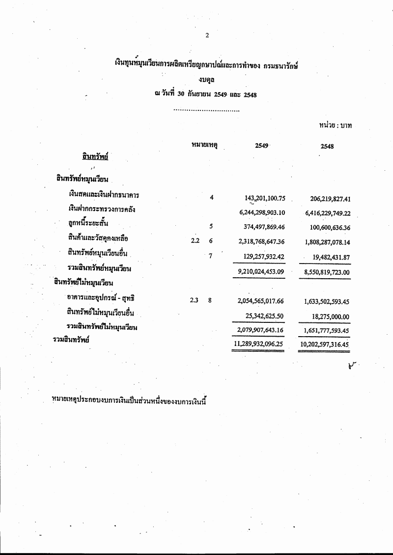 ชื่อเอกสาร :   (๒.๒) รับทราบรายงานผลการดำเนินงานรอบระยะเวลาบัญชีปี ๒๕๔๙ ของเงินทุนหมุนเวียนการผลิตเหรียญกษาปณ์และการกระทำ