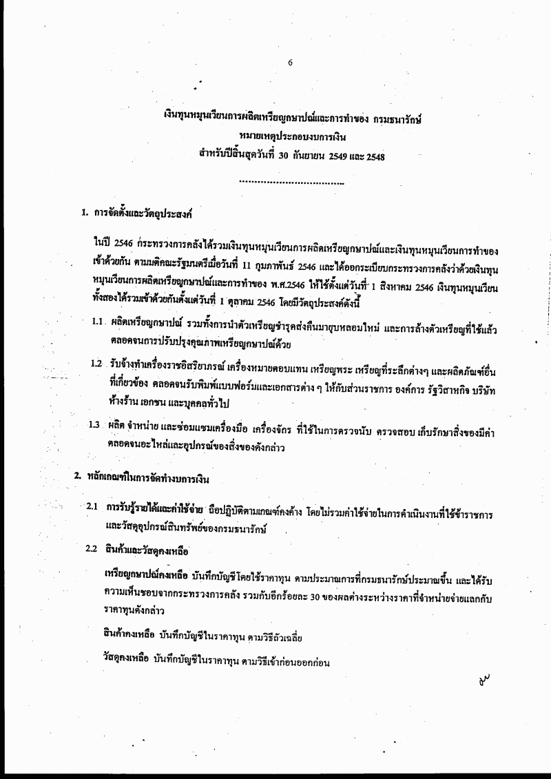 • (๒.๒) รับทราบรายงานผลการดำเนินงานรอบระยะเวลาบัญชีปี ๒๕๔๙ ของเงินทุนหมุนเวียนการผลิตเหรียญกษาปณ์และการกระทำ