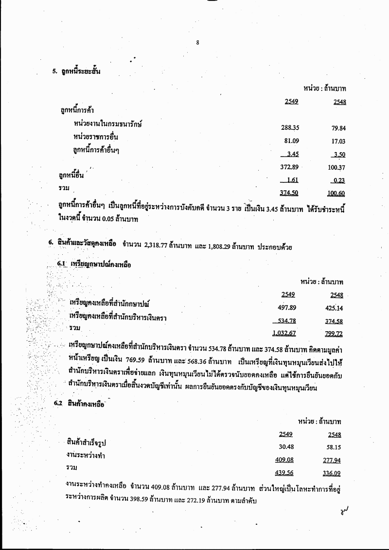• (๒.๒) รับทราบรายงานผลการดำเนินงานรอบระยะเวลาบัญชีปี ๒๕๔๙ ของเงินทุนหมุนเวียนการผลิตเหรียญกษาปณ์และการกระทำ