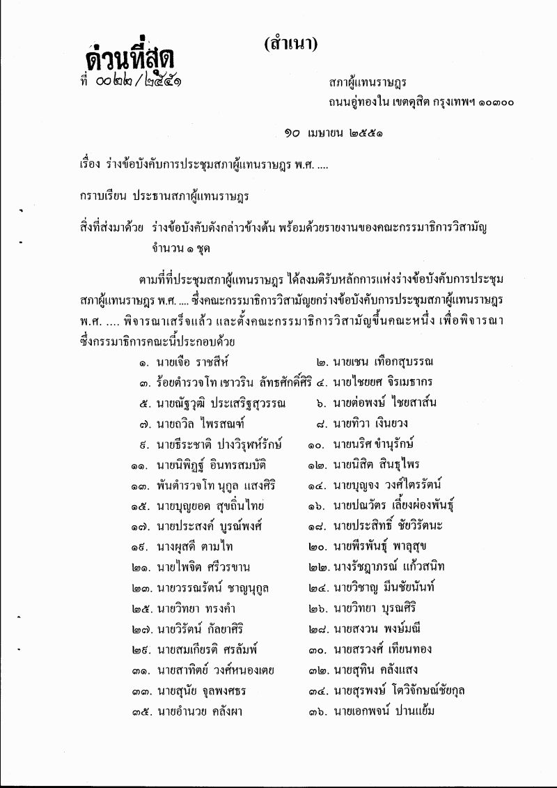 ร่างข้อบังคับการประชุมสภาผู้แทนราษฎร พ.ศ. ..... ซึ่งคณะกรรมาธิการวิสามัญพิจารณาเสร็จแล้ว