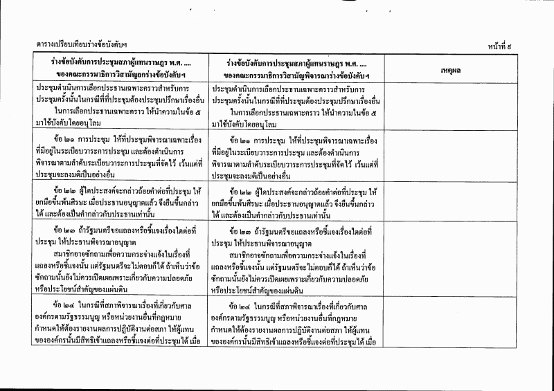 ตารางเปรียบเทียบร่างข้อบังคับการประชุมสภาผู้แทนราษฎร พ.ศ. ....