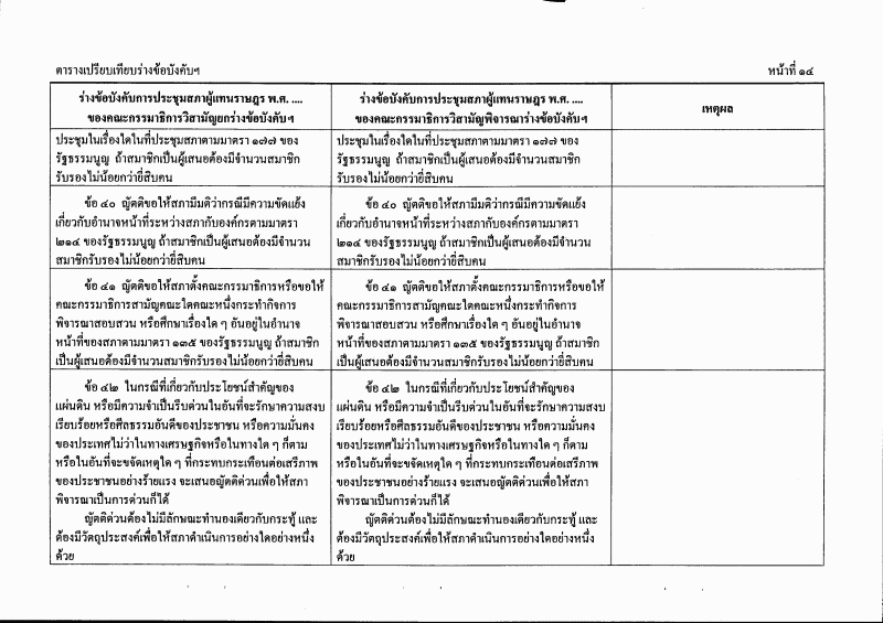 ตารางเปรียบเทียบร่างข้อบังคับการประชุมสภาผู้แทนราษฎร พ.ศ. ....