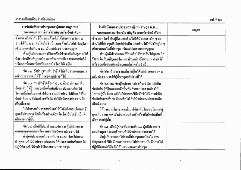 ตารางเปรียบเทียบร่างข้อบังคับการประชุมสภาผู้แทนราษฎร พ.ศ. ....