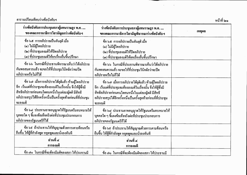 ตารางเปรียบเทียบร่างข้อบังคับการประชุมสภาผู้แทนราษฎร พ.ศ. ....