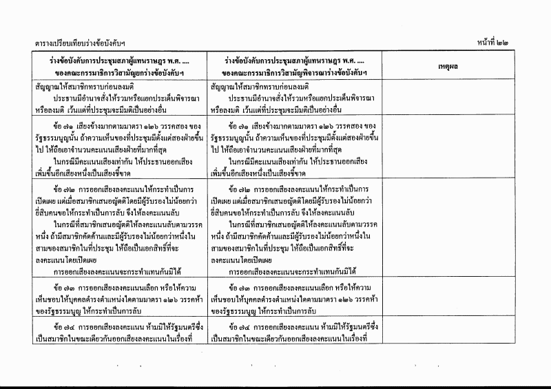 ตารางเปรียบเทียบร่างข้อบังคับการประชุมสภาผู้แทนราษฎร พ.ศ. ....