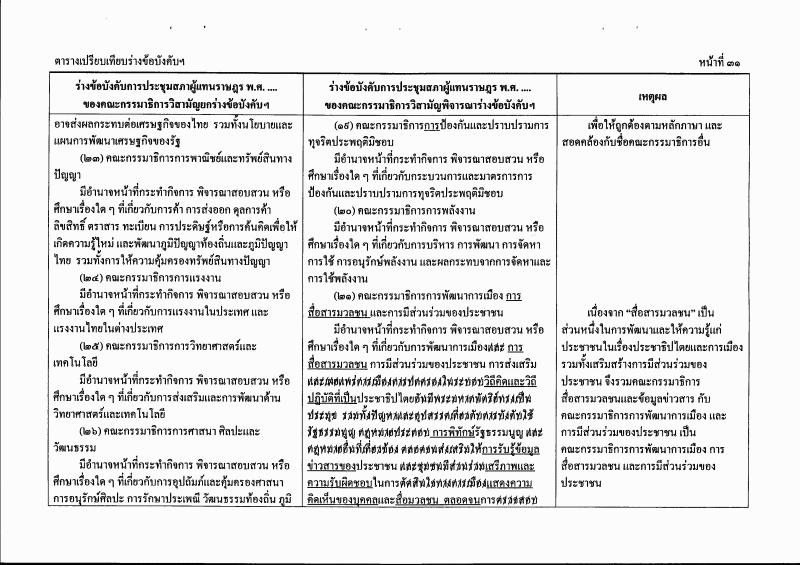 ตารางเปรียบเทียบร่างข้อบังคับการประชุมสภาผู้แทนราษฎร พ.ศ. ....
