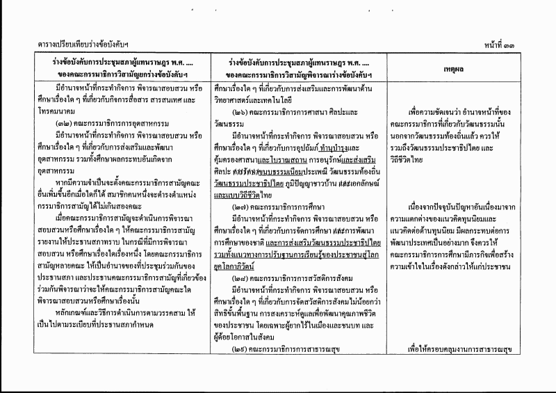 ตารางเปรียบเทียบร่างข้อบังคับการประชุมสภาผู้แทนราษฎร พ.ศ. ....