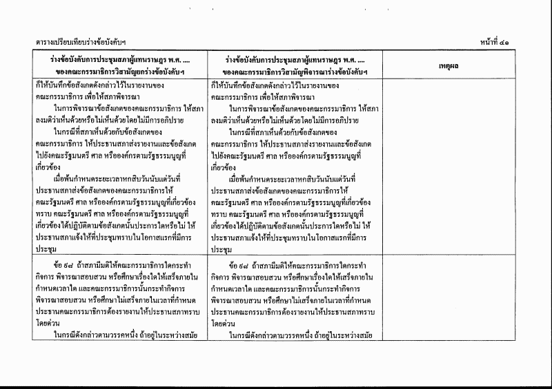 ตารางเปรียบเทียบร่างข้อบังคับการประชุมสภาผู้แทนราษฎร พ.ศ. ....