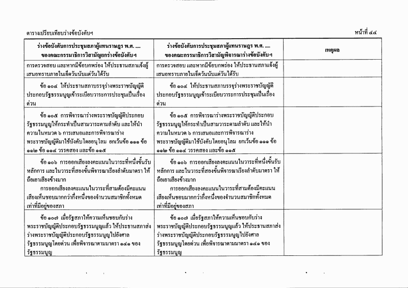 ตารางเปรียบเทียบร่างข้อบังคับการประชุมสภาผู้แทนราษฎร พ.ศ. ....