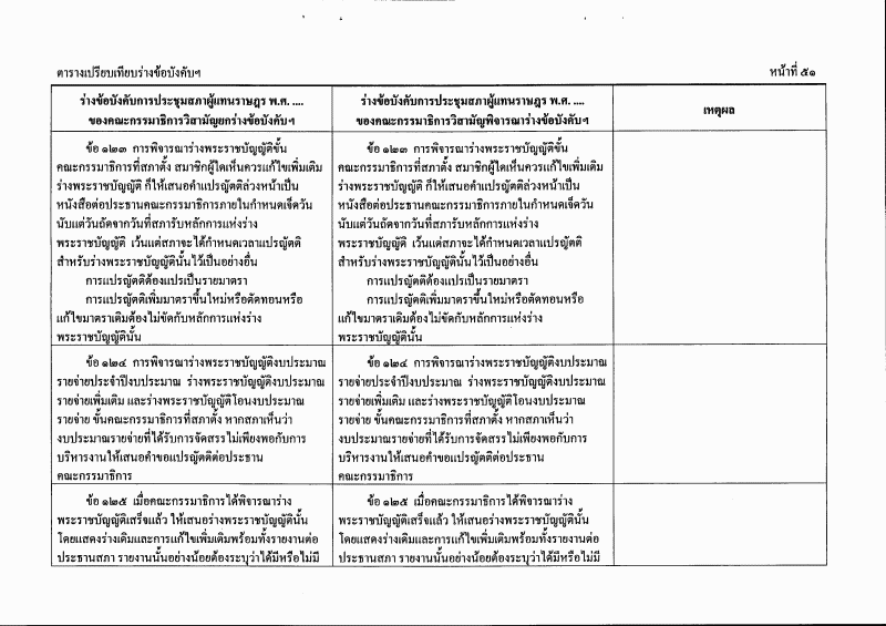 ตารางเปรียบเทียบร่างข้อบังคับการประชุมสภาผู้แทนราษฎร พ.ศ. ....