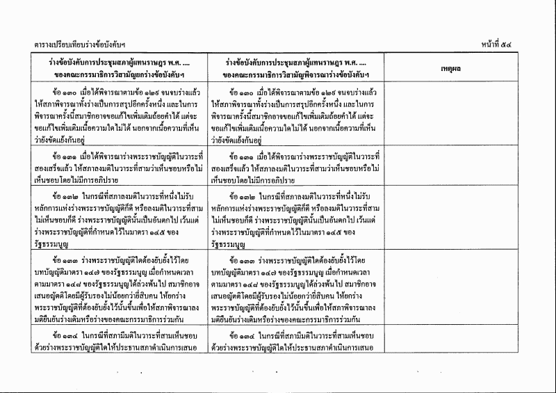 ตารางเปรียบเทียบร่างข้อบังคับการประชุมสภาผู้แทนราษฎร พ.ศ. ....