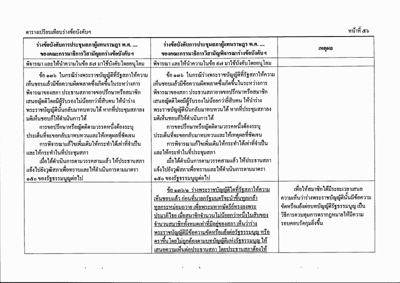ตารางเปรียบเทียบร่างข้อบังคับการประชุมสภาผู้แทนราษฎร พ.ศ. ....