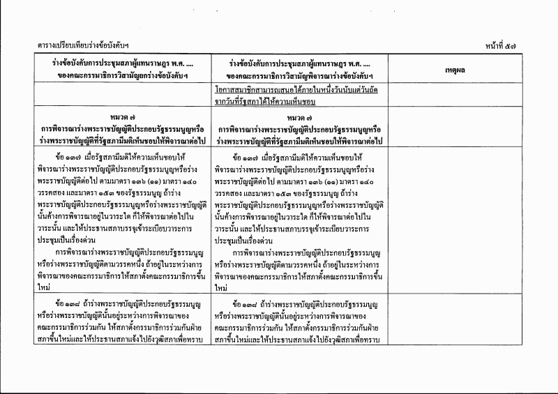 ตารางเปรียบเทียบร่างข้อบังคับการประชุมสภาผู้แทนราษฎร พ.ศ. ....