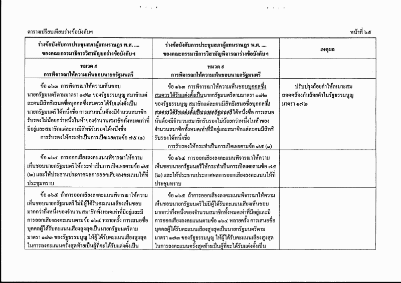 ตารางเปรียบเทียบร่างข้อบังคับการประชุมสภาผู้แทนราษฎร พ.ศ. ....