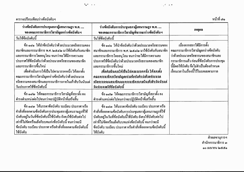 ตารางเปรียบเทียบร่างข้อบังคับการประชุมสภาผู้แทนราษฎร พ.ศ. ....