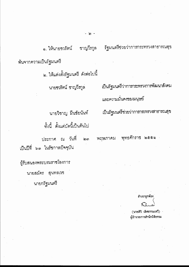 • รับทราบพระบรมราชโองการโปรดเกล้าฯ ประกาศให้รัฐมนตรีพ้นจากความเป็นรัฐมนตรีและแต่งตั้งรัฐมนตรี