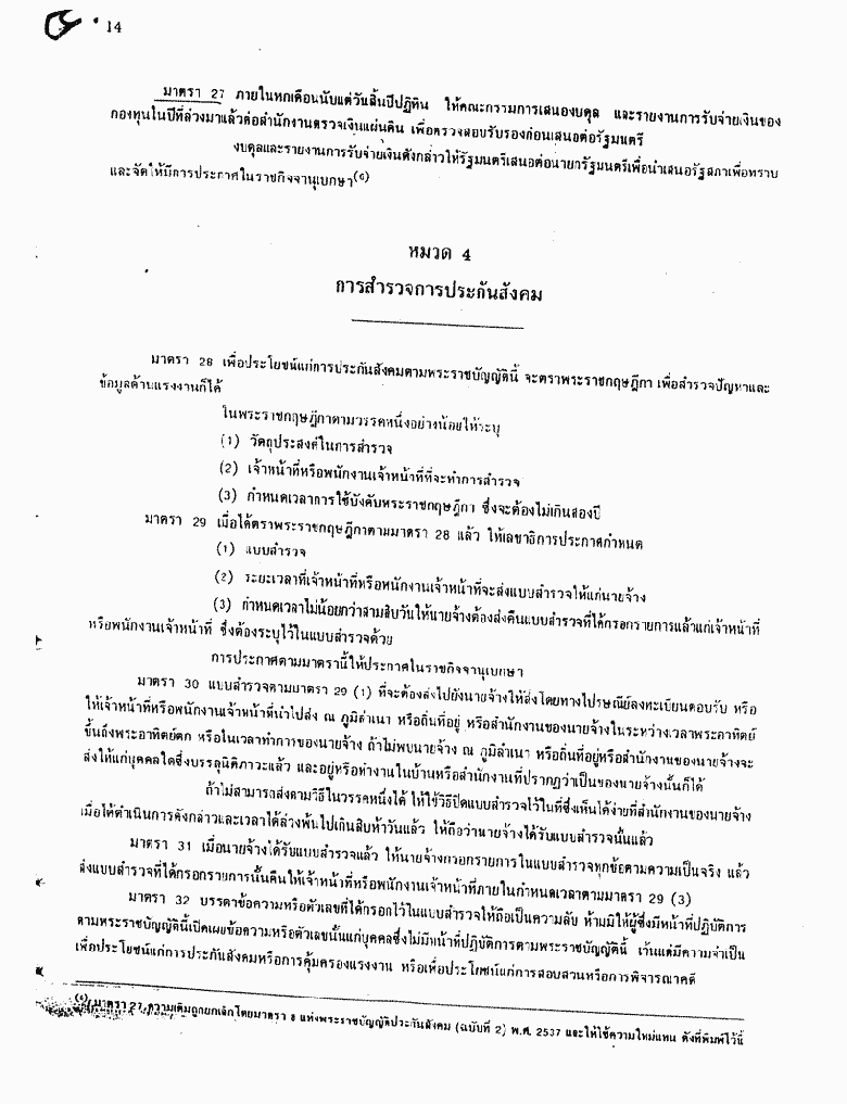 • รายงานการตรวจสอบงบดุล งบรายรับ-รายจ่ายเงินกองทุนประกันสังคม ประจำปี ๒๕๔๒