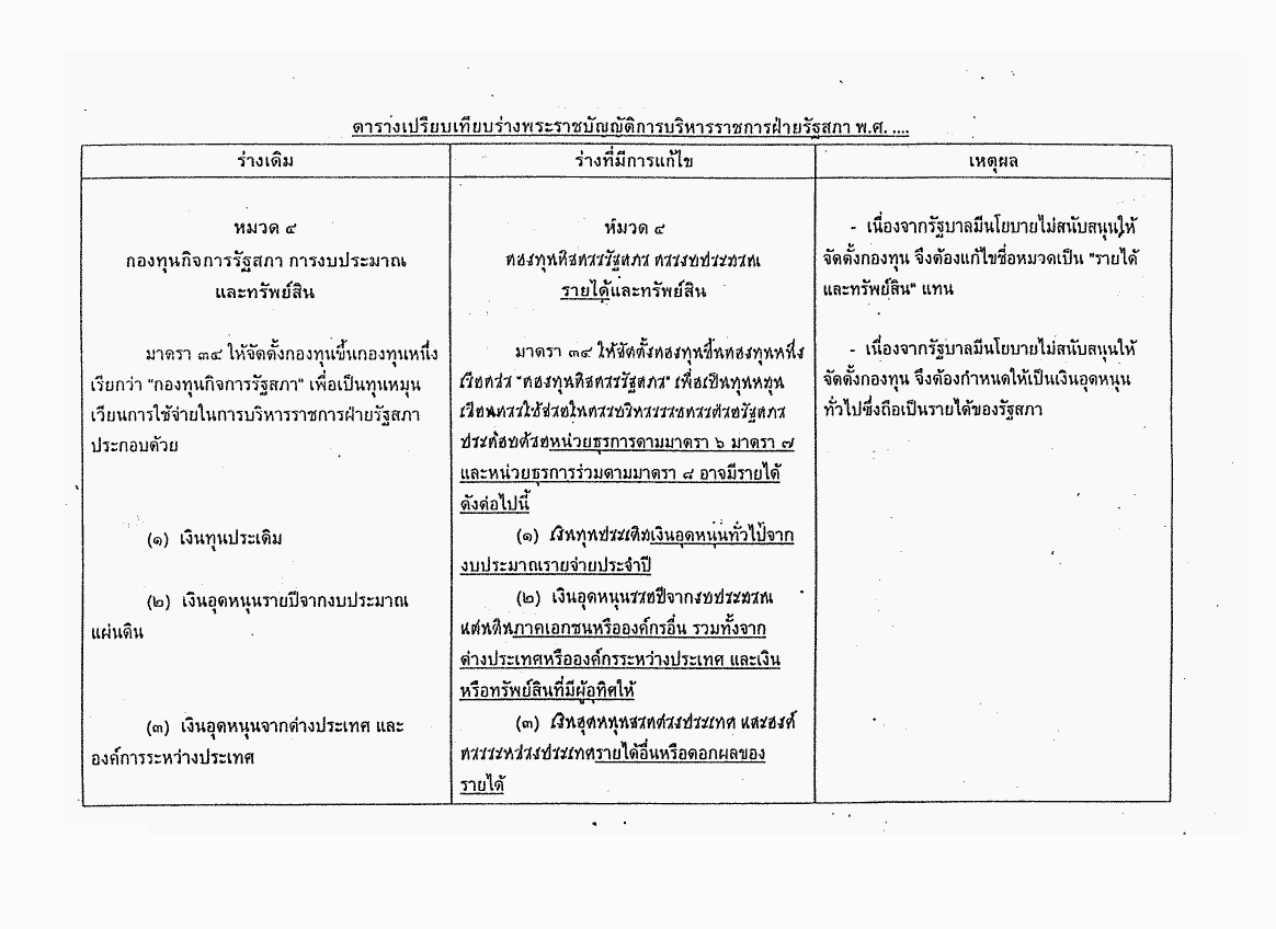 ชื่อเอกสาร :   การแก้ไขเพิ่มเติมร่างพระราชบัญญัติการบริหารราชการฝ่ายรัฐสภา พ.ศ. ....