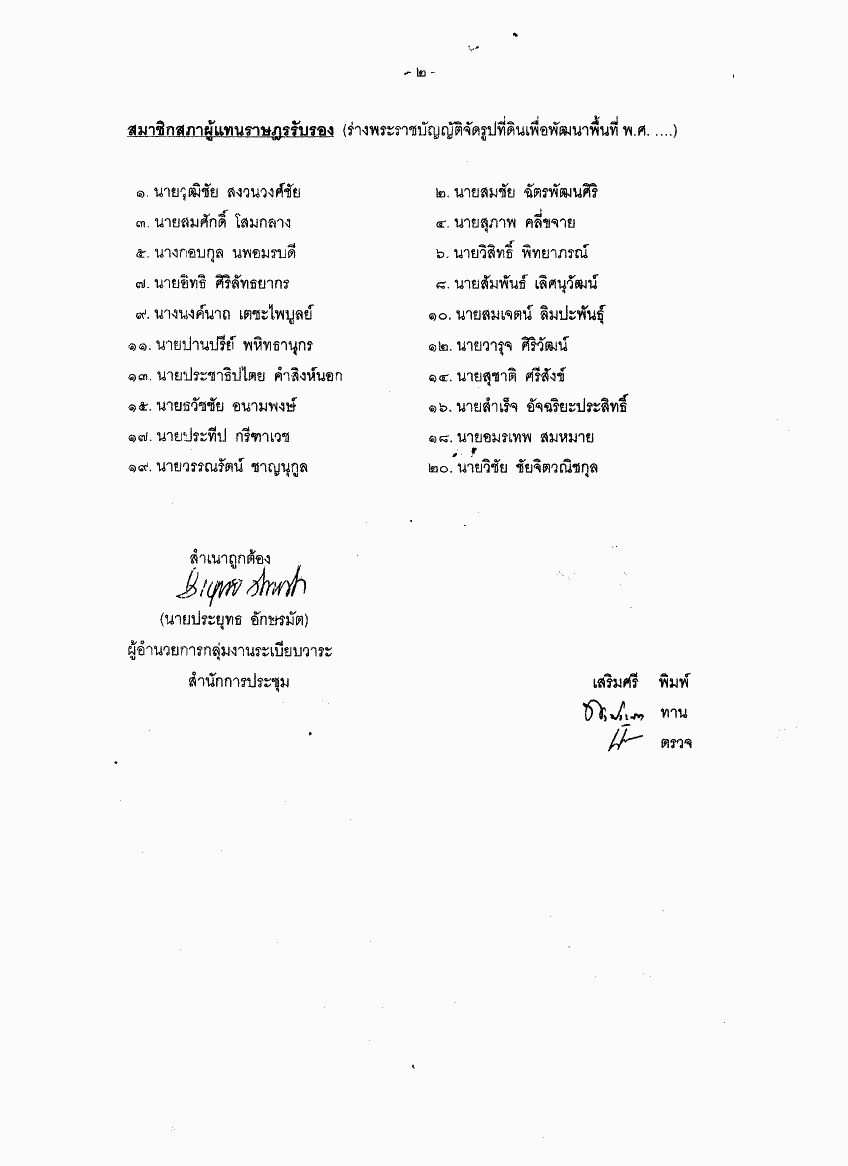 ชื่อเอกสาร :   ร่างพระราชบัญญัติจัดรูปที่ดินเพื่อพัฒนาพื้นที่ พ.ศ. .... (นายธนกร นันที และนายสมศักดิ์ พันธ์เกษม เป็นผู้เสนอ)