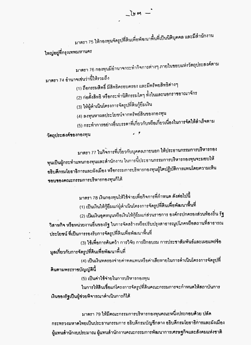 ชื่อเอกสาร :   ร่างพระราชบัญญัติจัดรูปที่ดินเพื่อพัฒนาพื้นที่ พ.ศ. .... (นายธนกร นันที และนายสมศักดิ์ พันธ์เกษม เป็นผู้เสนอ)