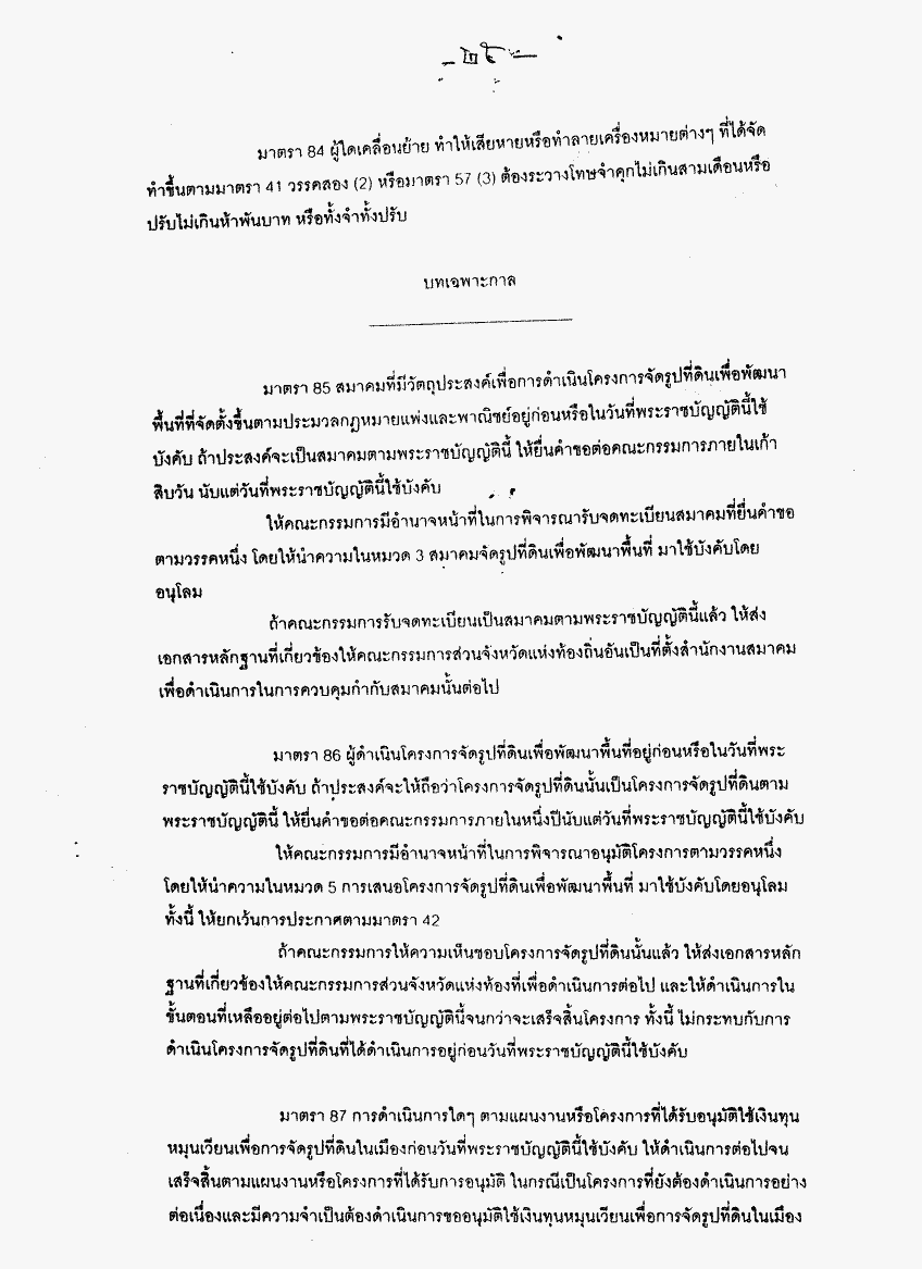 ชื่อเอกสาร :   ร่างพระราชบัญญัติจัดรูปที่ดินเพื่อพัฒนาพื้นที่ พ.ศ. .... (นายธนกร นันที และนายสมศักดิ์ พันธ์เกษม เป็นผู้เสนอ)