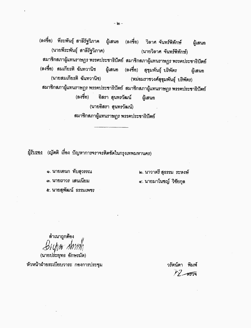 ขอเสนอญัตติ เรื่อง ปัญหาการจราจรติดขัดในกรุงเทพมหานคร |