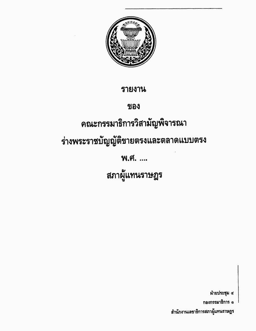 ชื่อเอกสาร :   ร่างพระราชบัญญัติขายตรงและตลาดแบบตรง พ.ศ..... ซึ่งคณะกรรมาธิการวิสามัญพิจารณาเสร็จแล้ว